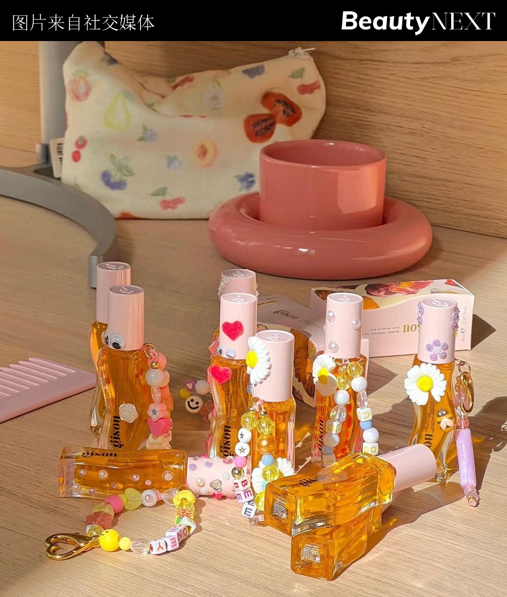 平價(jià)彩妝品牌e.l.f.與被稱為“白女必備”的Stanley杯子合作推出了一款可以完美夾在杯上的潤(rùn)唇膏收納盒,讓嘴唇和身體實(shí)現(xiàn)由內(nèi)而外的補(bǔ)水;以蜂蜜作為主要原料的小眾純凈美妝品牌Gisou則在自己的唇油上加入亮晶晶的鏈子,這些裝飾由品牌創(chuàng)始人親自挑選并設(shè)計(jì)。