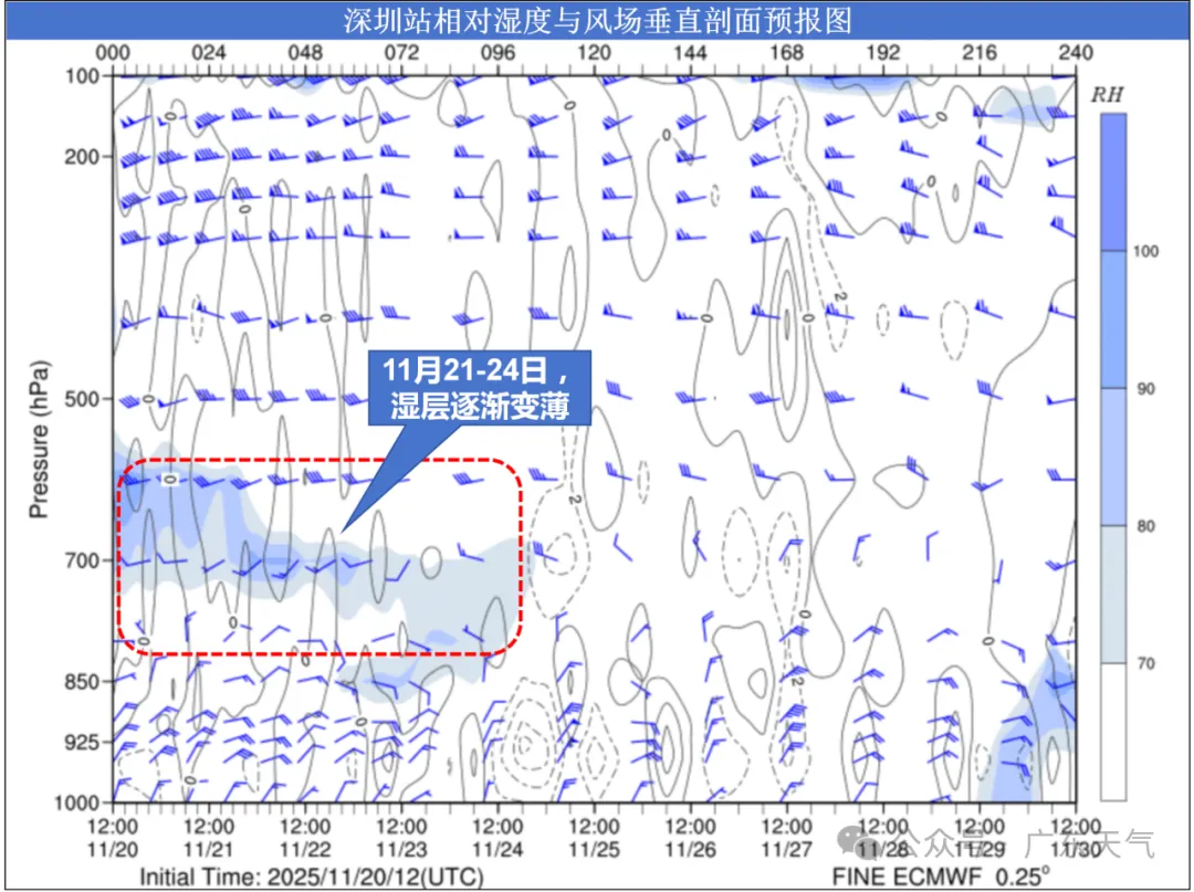 預計21日-24日,中層的濕區(qū)逐漸變薄,廣東大部晴朗干燥,戶外活動注意森林防火。