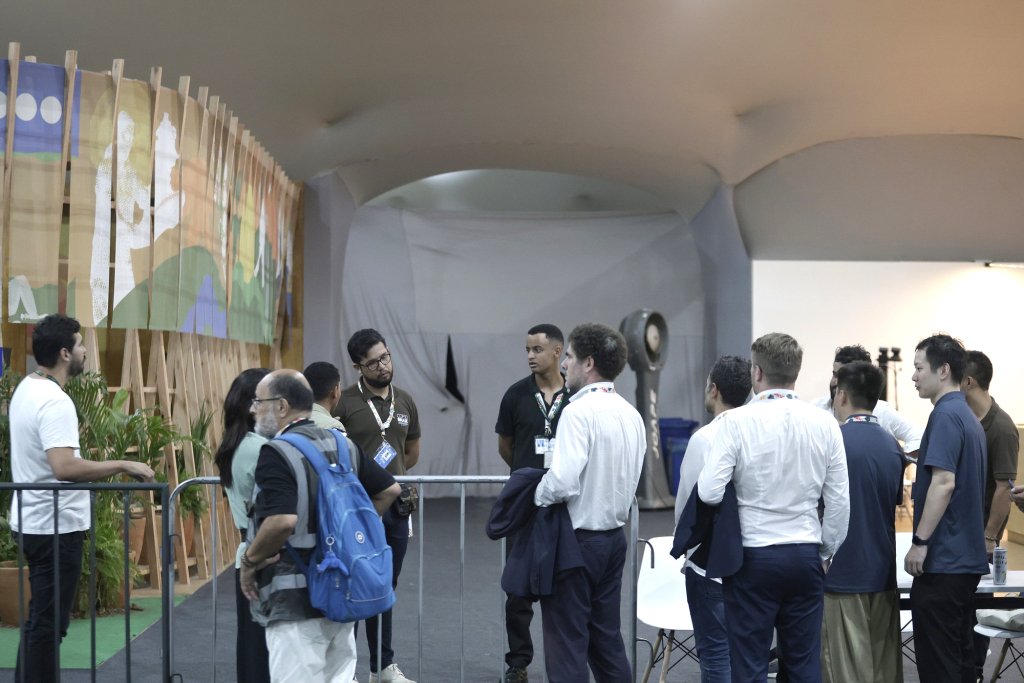 11月20日,巴西貝倫,聯(lián)合國氣候峰會會場在重新開放后,人們進(jìn)入會場。