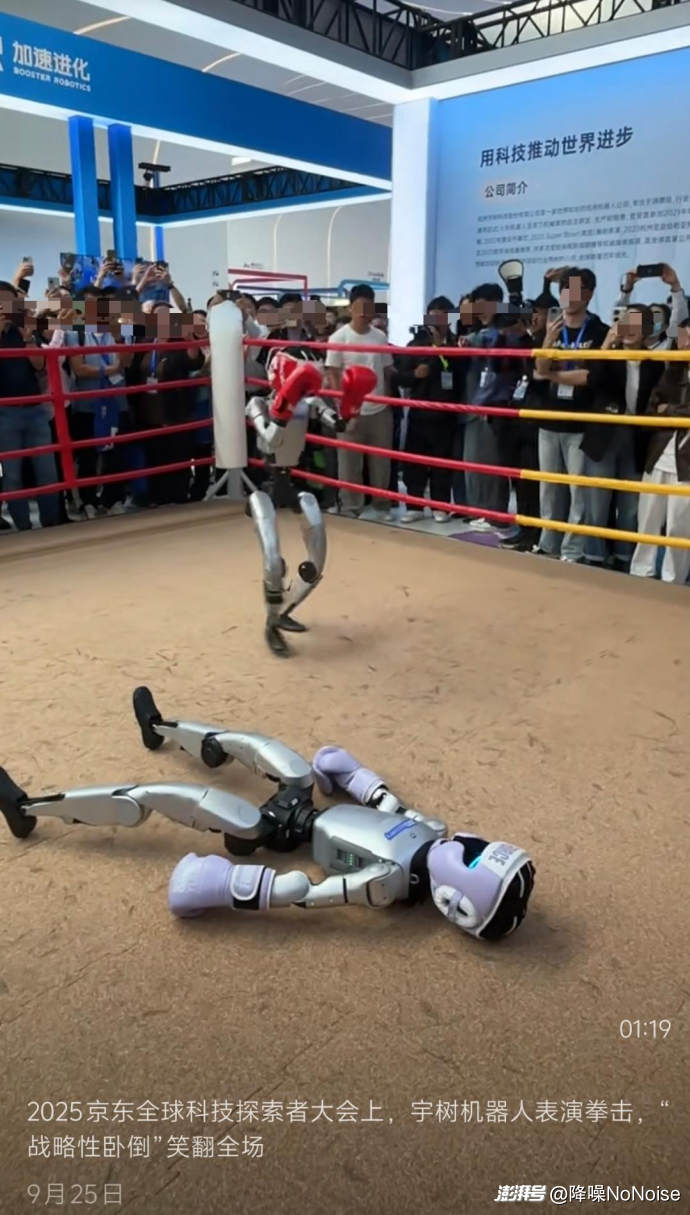 ▲機器人在拳擊表演中「戰(zhàn)略性臥倒」