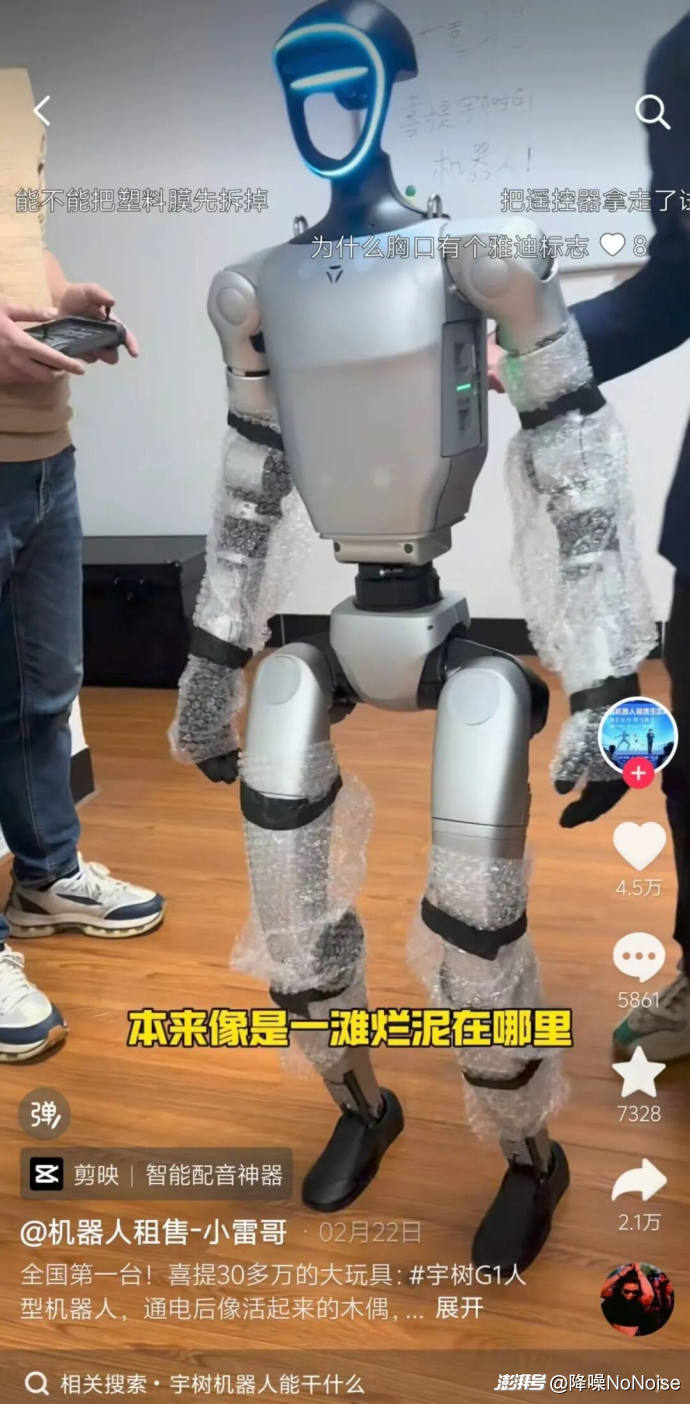 2月末,90后的小雷哥買下了人生中第一臺機器人——價值30萬元的高配版宇樹G1。他隨手拍下開箱視頻:七十多斤的「鐵疙瘩」竟自行站起,「像是木偶被注入了生命,從一灘爛泥變成通了電就能行走的鋼鐵戰(zhàn)士」。
