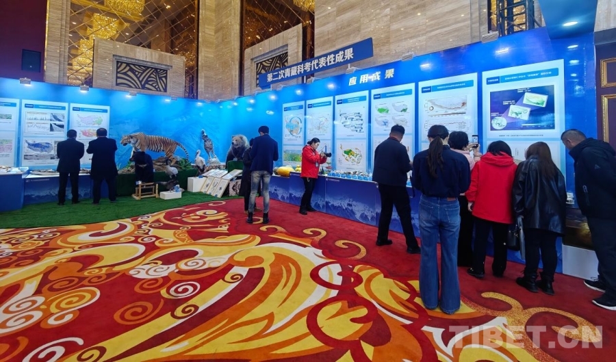 圖為第二次青藏科考成果綜合集成應(yīng)用發(fā)布會現(xiàn)場參會人員參觀第二次青藏科考成果展覽 攝影:次旦拉姆