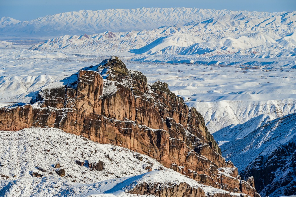 11月23日,新疆昌吉,雪后初霽,呼圖壁縣境內(nèi)的天山百里丹霞景區(qū)披上銀裝。