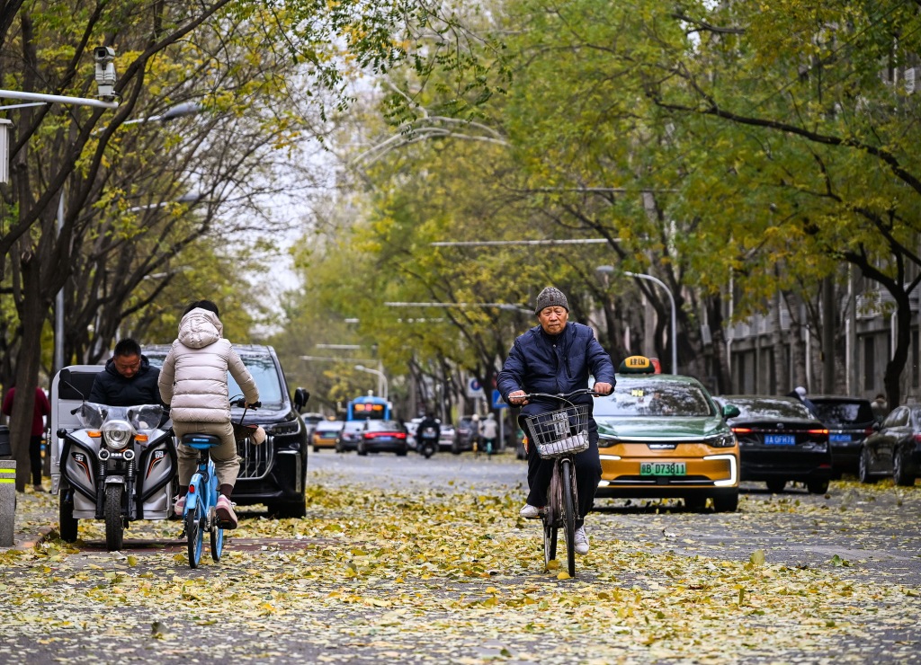 11月24日,北京迎來(lái)降溫寒潮天氣,大風(fēng)吹得滿(mǎn)城落葉。