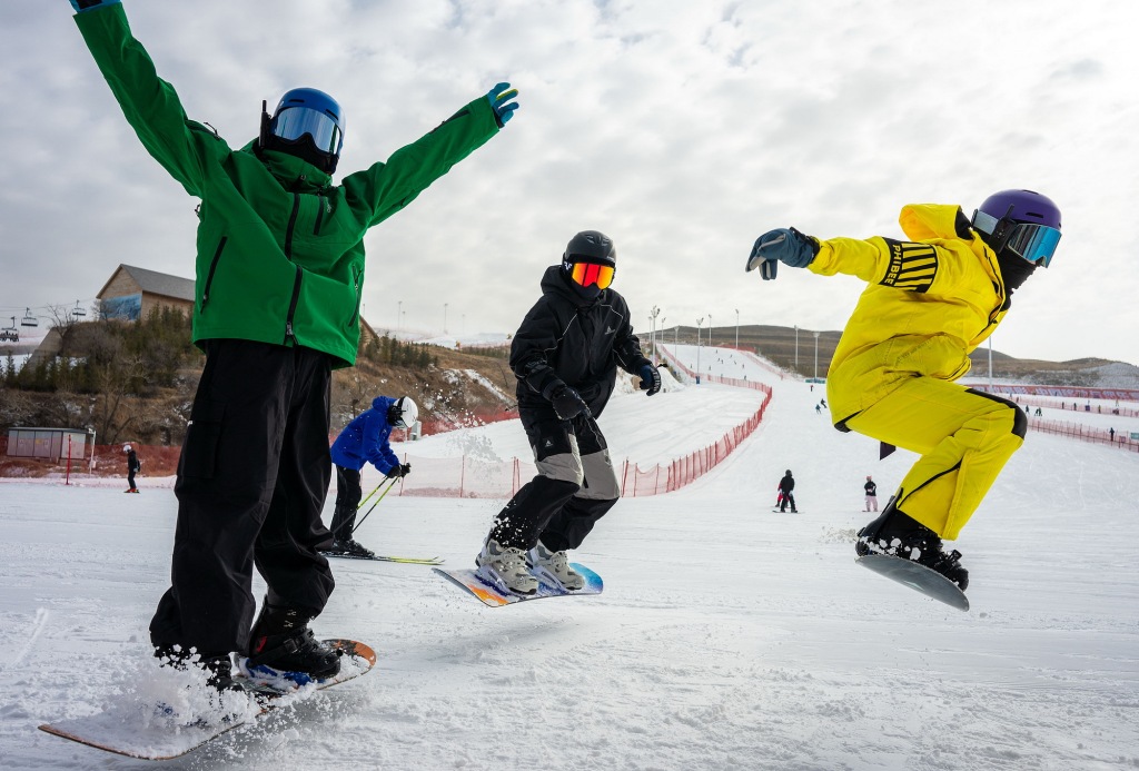 11月23日,內(nèi)蒙古呼和浩特市馬鬃山滑雪場(chǎng),滑雪愛(ài)好者在練習(xí)滑雪360°轉(zhuǎn)體技巧。