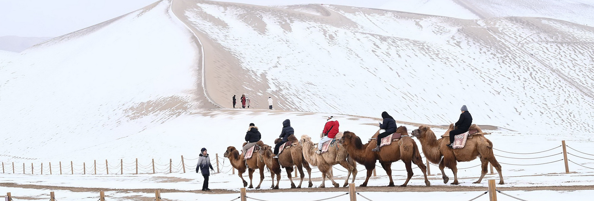 11月23日,甘肅酒泉,游客在敦煌市鳴沙山月牙泉景區(qū)游覽。