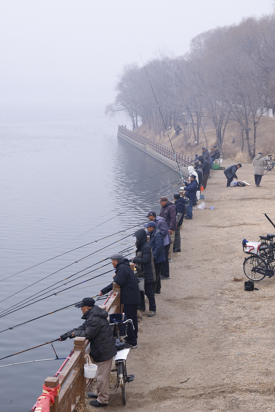 11月24日,遼寧沈陽(yáng),氣溫驟降至5℃左右,市民身著厚衣在岸邊垂釣。