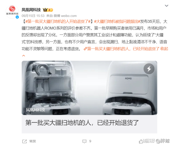 因此,在大疆進(jìn)入掃地機(jī)市場(chǎng)前,由于品牌光環(huán)的存在,拉高了用戶對(duì)新品的期待;一旦產(chǎn)品力未達(dá)預(yù)期,失望之聲便會(huì)被加倍放大。