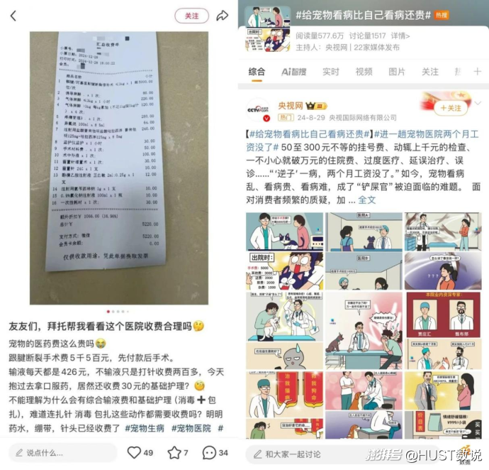 圖 1 小紅書上的寵物就醫(yī)“天價賬單”以及相關(guān)微博話題