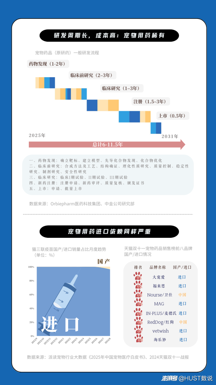 因此,目前國內(nèi)寵物用藥市場以外資企業(yè)旗下產(chǎn)品為主導(dǎo)。以寵物主熟知的貓三聯(lián)疫苗為例,這一疫苗長期依賴進(jìn)口,進(jìn)口產(chǎn)品占比超九成,該產(chǎn)品自2021年4月獲批上市以來多次提價,并時常出現(xiàn)缺貨現(xiàn)象。直到近年才有國產(chǎn)廠家研發(fā)的貓三聯(lián)疫苗上市,打破壟斷。