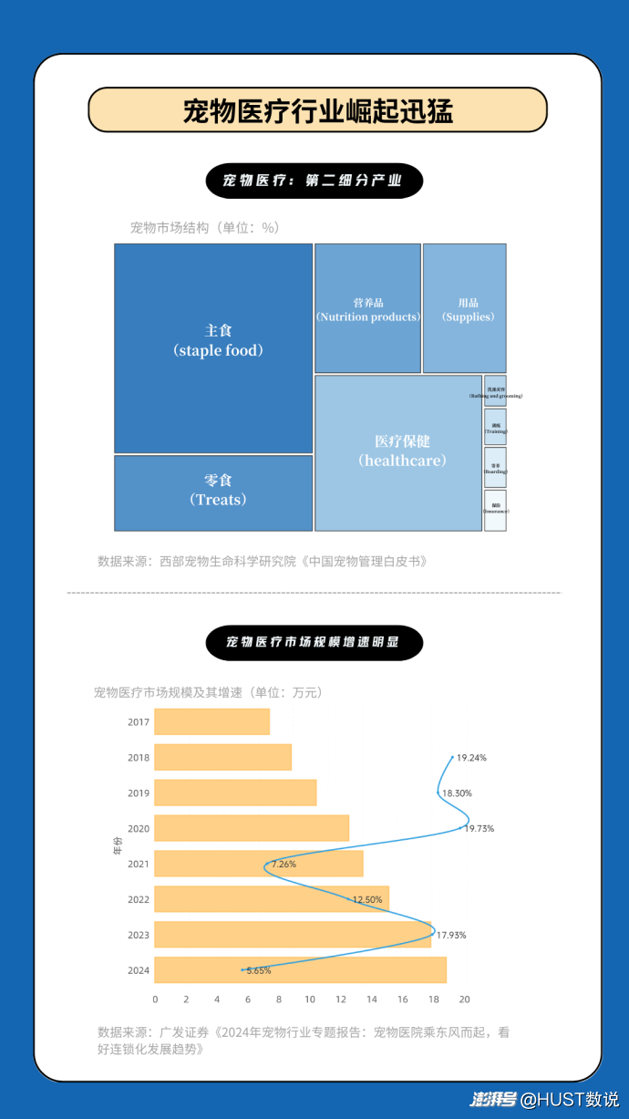 寵物醫(yī)療行業(yè)作為寵物行業(yè)第二大細(xì)分產(chǎn)業(yè),涵蓋了寵物診療、寵物藥品、寵物體檢、寵物疫苗等多個細(xì)分領(lǐng)域。目前,寵物醫(yī)療市場呈現(xiàn)出一二線城市養(yǎng)寵滲透率高、頭部企業(yè)占據(jù)較大市場份額等“紅海”特征,行業(yè)處于迅猛發(fā)展階段。