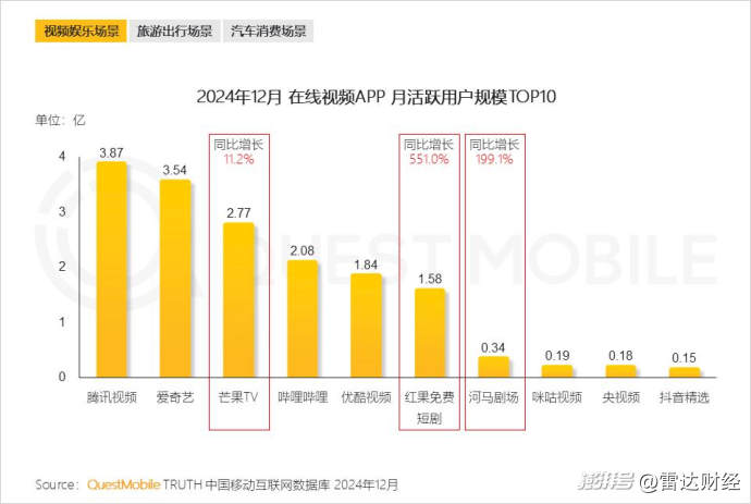 據(jù)第三方機(jī)構(gòu)QuestMobile發(fā)布的數(shù)據(jù),在APP上線不到一年后的2024年3月,紅果短劇以5400萬的月活躍用戶數(shù)躋身在線視頻行業(yè)第六,但其長達(dá)約1.38小時(shí)的月人均單日使用時(shí)長,卻超過愛奇藝、優(yōu)酷、騰訊視頻、芒果TV四大長視頻平臺(tái)。