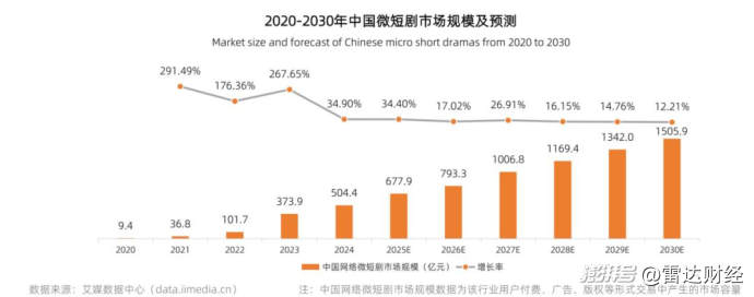 在商業(yè)價(jià)值方面,艾媒咨詢最新發(fā)布的《2025-2029年中國微短劇市場研究報(bào)告》數(shù)據(jù)顯示,中國網(wǎng)絡(luò)微短劇市場規(guī)模呈上升趨勢(shì),2025年中國微短劇市場規(guī)模預(yù)計(jì)將達(dá)677.9億元,同比上升34.4%,2030年或?qū)⒊?500億元。