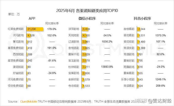 復(fù)盤紅果的崛起之路,作為率先大規(guī)模開展“免費(fèi)+廣告”模式的短劇APP,其憑借番茄小說團(tuán)隊(duì)的過往沉淀和母公司字節(jié)跳動(dòng)強(qiáng)大的技術(shù)支撐,在競爭激烈的微短劇行業(yè)中脫穎而出。今年6月,紅果的月活甚至一舉超過優(yōu)酷,直接飆升至2.1億。