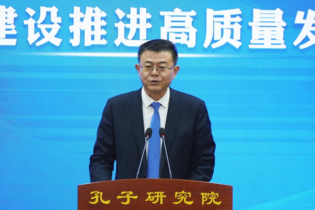 國承彥在講話中指出,2013 年11月,習(xí)近平總書記在孔子研究院召開專家學(xué)者座談會,發(fā)出大力弘揚(yáng)中華優(yōu)秀傳統(tǒng)文化的號召。多年來,孔子研究院始終牢記囑托,在學(xué)術(shù)研究、傳播普及、交流互鑒、人才引育等方面取得一系列標(biāo)志性成果。省委、省政府高度重視孔子研究院發(fā)展,出臺多項(xiàng)舉措支持學(xué)術(shù)建設(shè),濟(jì)寧、曲阜兩級黨委政府提供堅(jiān)實(shí)保障,大力支持孔子研究院發(fā)展??鬃友芯吭阂藙荻希回?fù)重托,全力打開高質(zhì)量發(fā)展新局面。