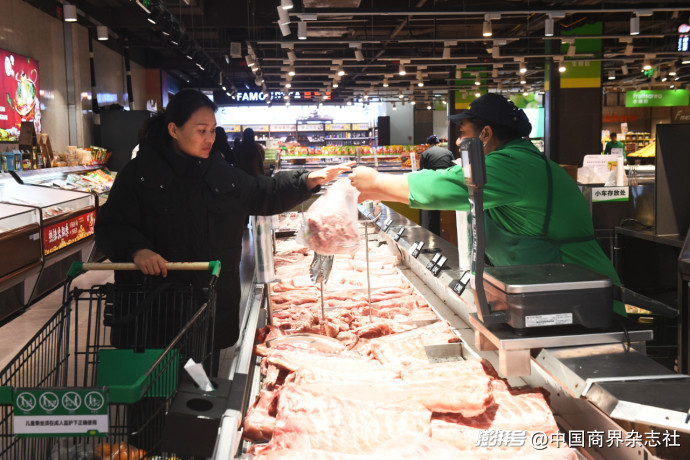 圖為河北省新樂(lè)市一家超市內(nèi),消費(fèi)者正在選購(gòu)豬肉。(圖片由CNSPHOTO提供)