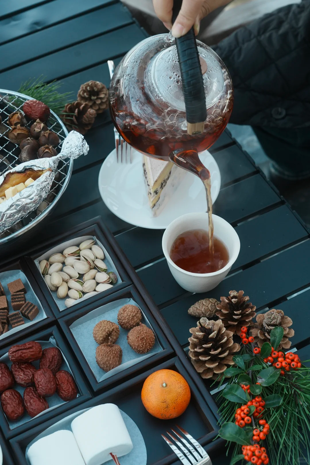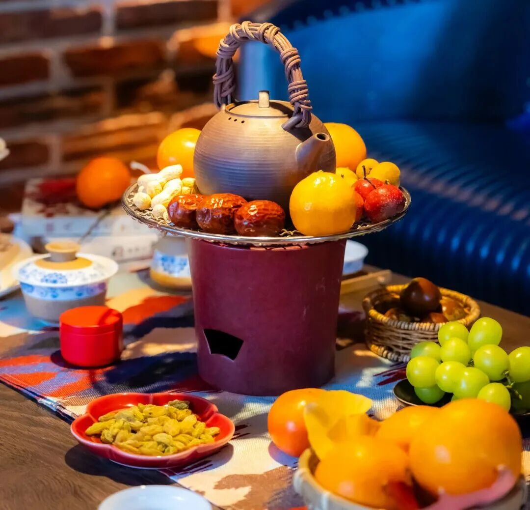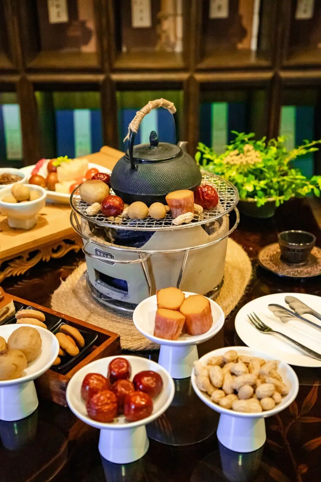 而真正的冬日儀式,在窗邊悄然展開——圍爐煮茶,正是此時最應(yīng)景的享受。爐上茶香裊裊,盤中干果茶點(diǎn)豐足,周圍圍繞的全是暖意、茶香與相聚的歡愉。