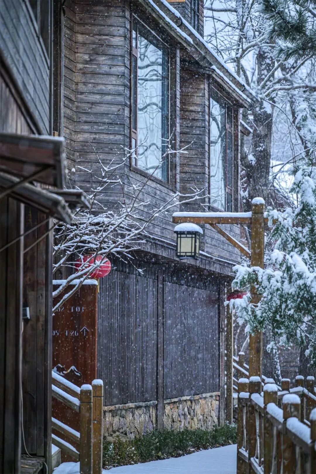 而在淄博潭溪山的森林木屋,冬日的詩意被演繹得淋漓盡致。