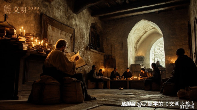 但我們還是有一個(gè)難處。從公元1000年講起,到哥倫布發(fā)現(xiàn)新大陸的1492年,這500年間的西方史料又稀少又散亂。給中國(guó)現(xiàn)代文明貢獻(xiàn)得不多。所以,最開始的幾季節(jié)目,我們每年只選擇幾個(gè)重要的點(diǎn),去聊西方的話題就夠了。比如這第二季我們就選了三個(gè)點(diǎn),一個(gè)是1054年東西基督教會(huì)的大分裂;一個(gè)是1095年的十字軍東征;還有一個(gè)就是這一年,1088年的博洛尼亞大學(xué)創(chuàng)辦。