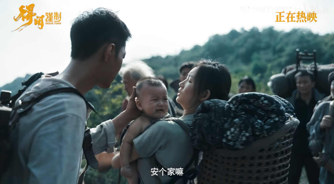 孔笙偏好以實(shí)景拍攝和嚴(yán)謹(jǐn)?shù)姆肋€原年代質(zhì)感,《父母愛情》踏遍山東半島搭建海軍大院,《山海情》劇組親自種植蘑菇,《瑯琊榜》一場10分鐘的戰(zhàn)爭戲動用云梯、滾木、煙、火拍了7天。電影制作也延續(xù)了這一傳統(tǒng),全程扎根宜昌取景置景,土墻瓦房矮坡水塘,灶臺豬圈地窖廣場,真實(shí)的山水村落為戈止鎮(zhèn)的 “桃花源” 氛圍提供了天然基底,讓觀眾信服故事背景,給故事托底,也讓戰(zhàn)爭的殘酷與溫暖的家園形成強(qiáng)烈的視覺反差。