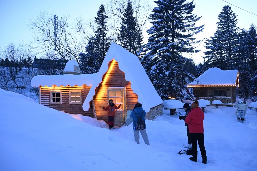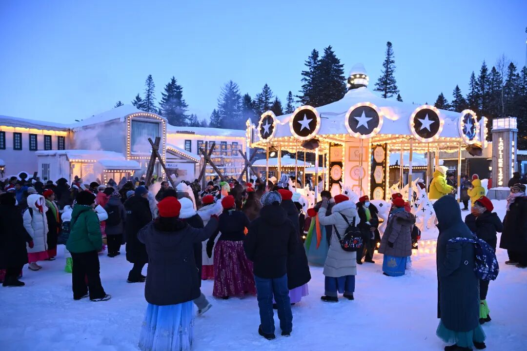 以“雪境星夜”為主題,景區(qū)打造全方位沉浸式體驗:白天可打卡星巴克、霸王茶姬、“朝家屋”等品牌快閃店;在粉雪部落身著鄂溫克族服裝與溫馴麋鹿拍照互動,參與“智取威虎山”主題打卡,品嘗烤串、烤地瓜等暖食;美食集聚區(qū)匯集梨花湯館、羊老大旋轉(zhuǎn)火鍋等本土美食,為雪國列車火鍋增添美食趣味。