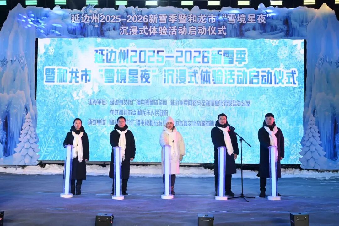 當(dāng)日傍晚時分,和龍市仙峰老里克迎來了延邊州2025-2026新雪季暨和龍市“雪境星夜”沉浸式體驗活動的啟動儀式。
