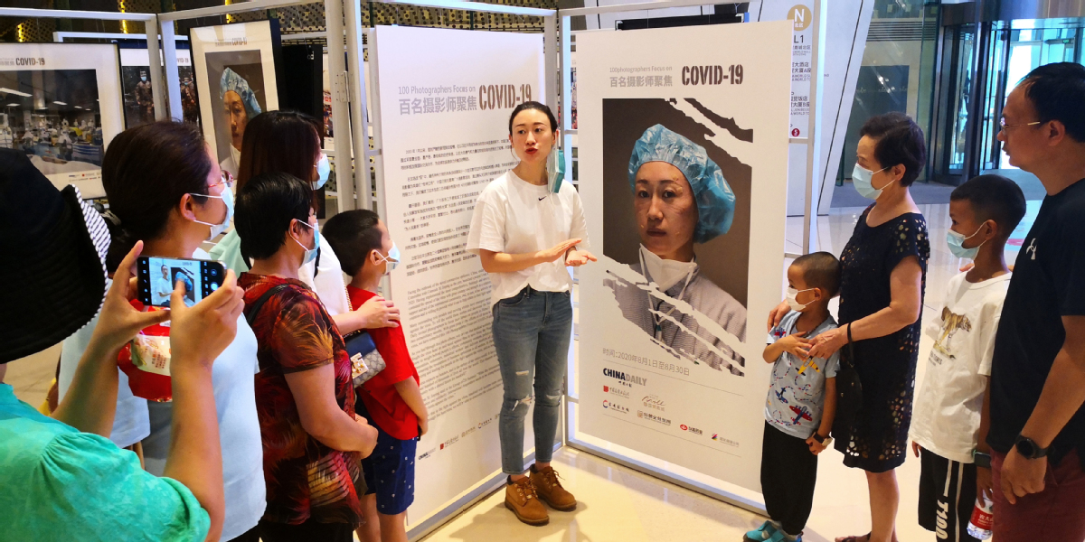 中國日報網(wǎng)8月1日電(記者陸中秋)8月1日上午,由中國日報社、中國畫報出版社主辦的《百名攝影師聚焦COVID-19》畫冊精選圖片展在北京國貿(mào)商城北區(qū)西配樓開幕。