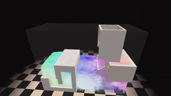 比如,彩虹色的流水注入不規(guī)則的泳池,整個(gè)水流的形狀、波瀾,完全符合現(xiàn)實(shí)世界的物理特征。