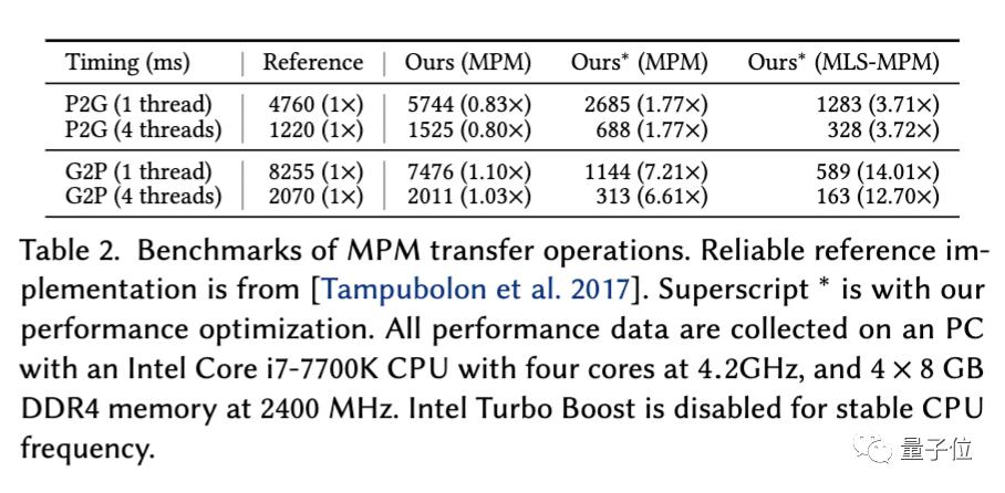 MLS-MPM在這兩個(gè)步驟中均比MPM更容易實(shí)現(xiàn),可以輕松實(shí)現(xiàn)性能的提升。