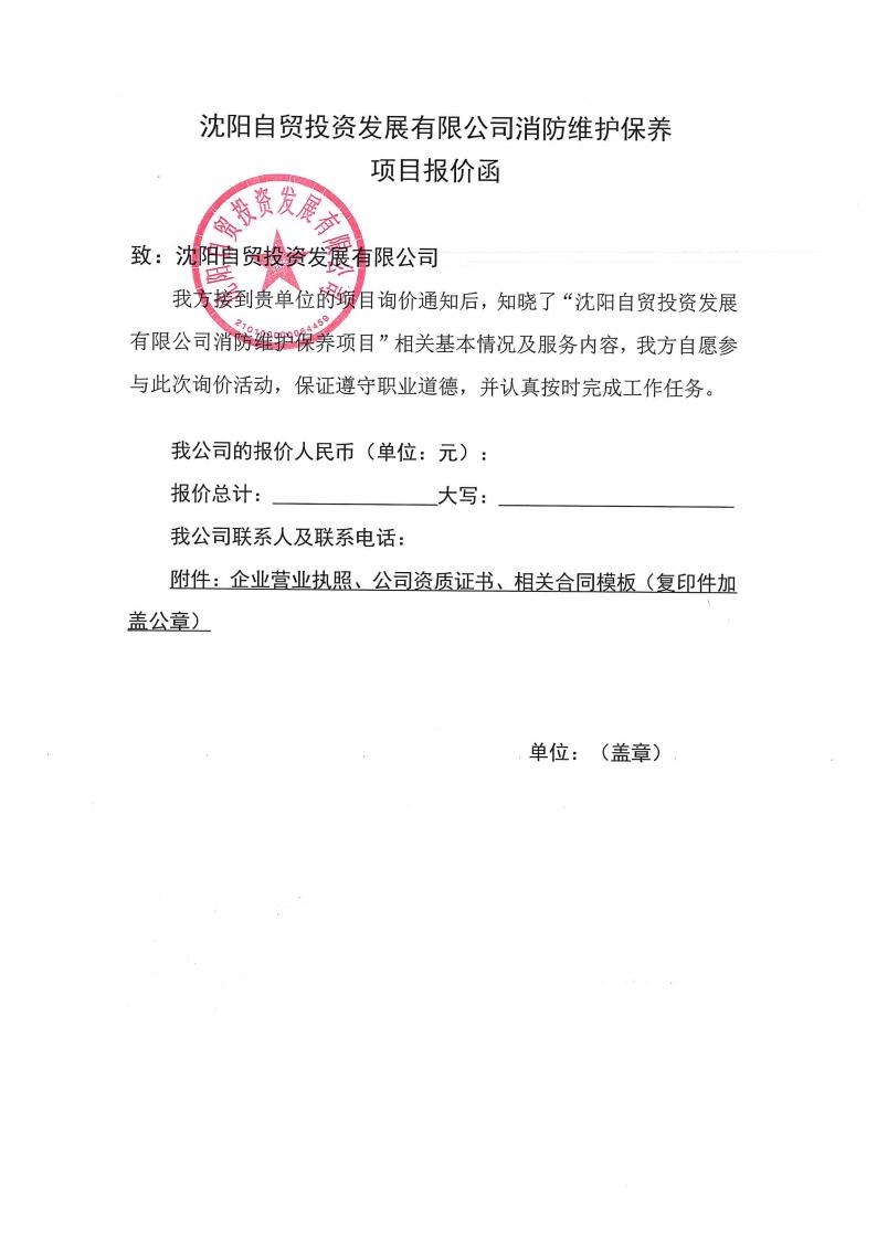附件2: 沈陽(yáng)自貿(mào)投資發(fā)展有限公司消防維護(hù)保養(yǎng)詢價(jià)項(xiàng)目報(bào)價(jià)函模板